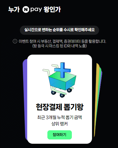 네이버 페이 왕 총 5억의 주인공이 되시길 바랍니다. 12월 25일까지 힘내셔서 참여하시기 바랍니다.