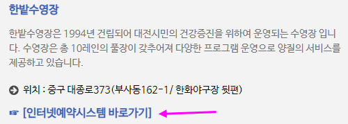 - 부대시설 : 야외수영장, 그늘막, 탈의식, 샤워실, 용품점(튜브대여), 매점, 음식