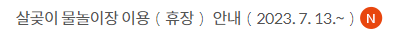 매주 월요일 휴장 | 올해 신규 오픈 | |