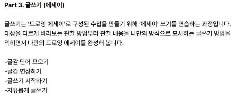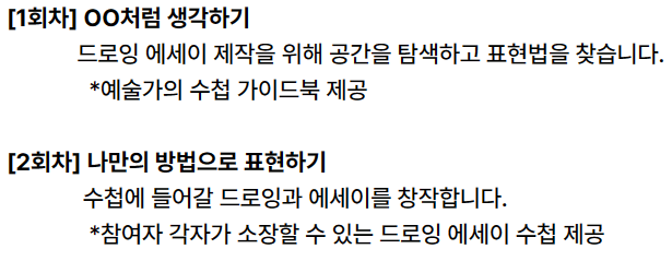 - 참여방법 : 현장교육(교육 가이드북, 에세이 수첩 제공), 온라인교육(교육 가이드북 제공)