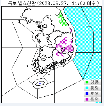| 특보 발표현황(2023.06.27.11:00 이후) | |